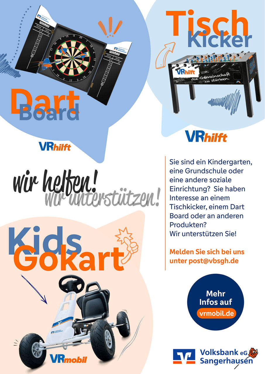 Kindergärten, Schulen oder andere soziale Einrichtungen haben jetzt die Möglichkeit, von unserer Unterstützung zu profitieren: Aus den Programmen VRmobil und VRhilft stehen noch Produkte bereit, die wir dieses Jahr gerne vergeben möchten.